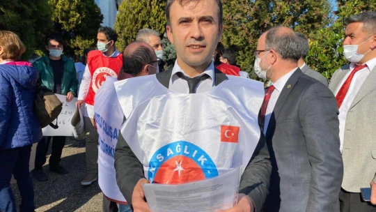 “Pandemide omuz omuza cephede savaş veren kahramanlar, tüm zorluklara rağmen hiç yılmadan devletine ve milletine hizmet eden cefakarlar, kısacası cefanın talipleri sağlık çalışanları, bugün burada ayrımcılığı, yaşadığımız ekonomik sorunların görmezden gelinmesini, hekim dışı sağlık personeline yapılan haksızlığa tepki koymak için toplandık.