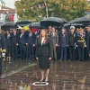 Törende saygı duruşunda bulunulmasının ardından İstiklal Marşı okunurken Şanlı Türk Bayrağı göndere çekildi.