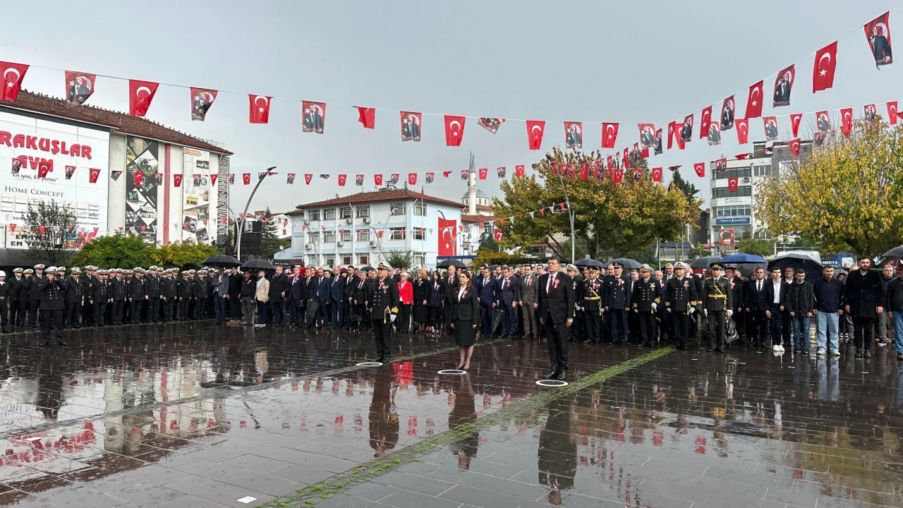 Cumhuriyet Meydanı’nda düzenlenen törende, Atatürk Anıtı’na Bartın Valisi Dr. Nurtaç Arslan, Garnizon Komutanı Deniz Kıdemli Albay Serhat Sır ve Bartın Belediye Başkanı Muhammet Rıza Yalçınkaya tarafından çelenk sunuldu.