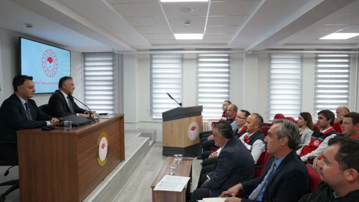 Ziyaret kapsamında Gıda ve Kontrol Genel Müdürlüğü uzmanlarıyla birlikte İl Tarım ve Orman Müdürlüğü toplantı salonunda, il ve ilçe yöneticileriyle değerlendirme toplantısı gerçekleştirildi.