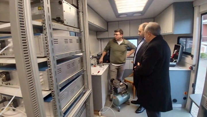 Çalışmalar kapsamında Ulus Kaymakamı Fırat Kadiroğlu ile Belediye Başkanı Hasan Hüseyin Uzun, Mobil Hava Kalitesi Ölçüm Aracı'nı ziyaret ederek yetkililerden yürütülen faaliyetler hakkında bilgi aldı.