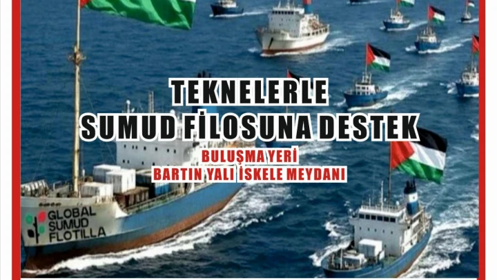 Filistin Gazze'ye Destek Platformu öncülüğünde, çeşitli sivil toplum kuruluşları ve derneklerin katkılarıyla gerçekleştirilecek olan 'Teknelerle Sumud Filosuna Destek' programı, tüm Türkiye'de eş zamanlı olarak yapılacak. Program, Genel Merkez Teşkilat Başkanlığı himayesinde 3 Ekim 2025 Cuma günü Bartın'da da hayata geçirilecek.