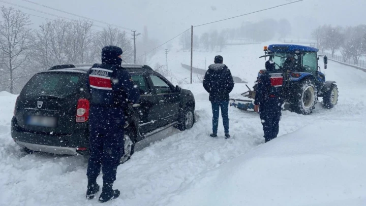 Yoğun kar yağışının etkili olduğu Bartın'da, jandarma ekipleri trafikte mahsur kalan vatandaşların yardımına koştu. Olumsuz hava koşulları nedeniyle yollarda zor anlar yaşayan sürücüler ve yolcular, jandarma ekiplerinin zamanında müdahalesiyle güvenli alanlara ulaştırıldı.