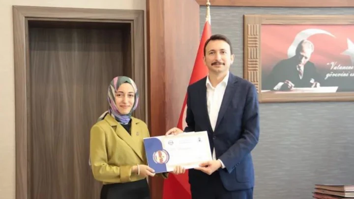 Amasra Kaymakamı Muhammed Çetin, Amasra Toplum Sağlığı Merkezi Başkanı olarak görev yaparken Zonguldak Bülent Ecevit Üniversitesi'ne Uzman Doktor olarak atanan Dr. Dilek Gedik'e başarı belgesi takdim etti.