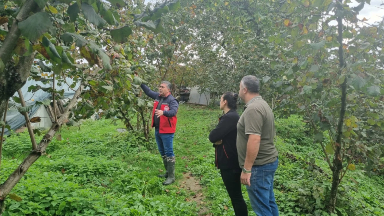 “Çiftçimiz Öğreniyor, Fındık Gelişiyor” sloganıyla yürütülen program kapsamında, üreticilere hasat sonrası dönemde yapılması gereken kültürel bakım ve üretim teknikleri hakkında bilgi veriliyor.