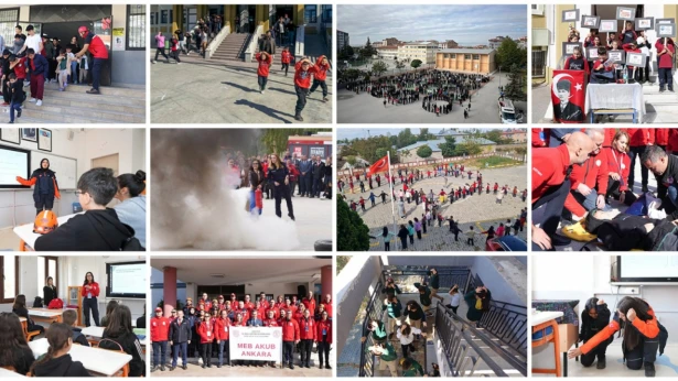 Etkinliklerde ayrıca yangın söndürme uygulamaları yapıldı. İtfaiye ekipleri yangın tüpü kullanımını öğrencilere gösterirken, AFAD ve MEB AKUB (Millî Eğitim Bakanlığı Arama Kurtarma Birimi) personelleri de afet sonrası tahliye ve toplanma süreçleri hakkında bilgilendirmelerde bulundu.