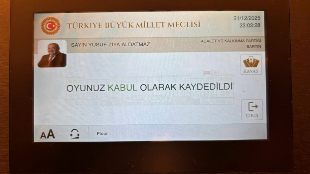 Türkiye Büyük Millet Meclisi Genel Kurulu'nda 14 gün süren yoğun mesainin ardından, 2026 Yılı Merkezi Yönetim Bütçe Kanunu kabul edilerek yasalaştı. Bütçeye ilişkin oylamada Bartın milletvekilleri farklı yönlerde oy kullandı.