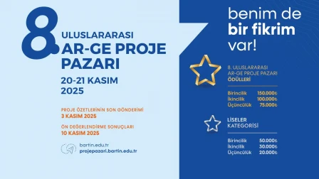 Bartın Üniversitesinin (BARÜ) proje geliştirme konusunda farkındalığı artırmak ve gençlerin yenilikçi fikirlerini desteklemek amacıyla düzenlediği Ar-Ge Proje Pazarı sekizinci kez kapılarını açıyor. Türkiye’nin alanında öncü kurumlarından yetkililerin de yer aldığı, bölgenin en önemli bilim ve teknoloji etkinliklerinden biri olarak gösterilen BARÜ 8. Uluslararası Ar-Ge Proje Pazarı başvuruları başladı.