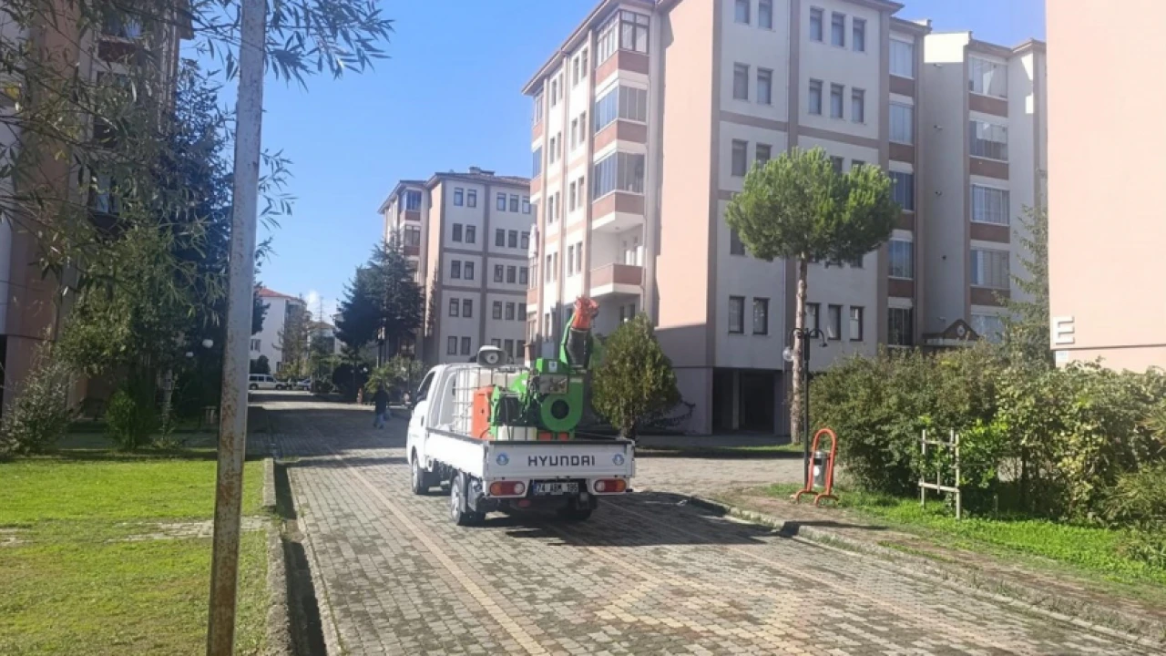 Bartın Belediyesi Veteriner İşleri Müdürlüğü Kent Zararlıları ile Mücadele Birimi, kahverengi kokarca (Halyomorpha halys) zararlısına karşı ilaçlama çalışmalarını sürdürüyor.