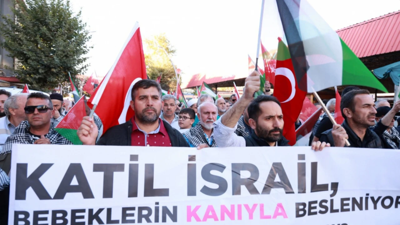 Katılımcılar, ellerinde Türk ve Filistin bayraklarıyla “Filistin için özgürlük, Katil İsrail!” sloganları atarak yürüyüşe geçti. Coşkulu kalabalık, tekbirler eşliğinde Cumhuriyet Meydanı’ndan Arap Camii önüne kadar ilerledi.
