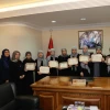 Kaynarca Fatih Kız Kur’an Kursundan 8, Hendekyanı Erkek Kur’an Kursundan ise 2 öğrenci, hafızlık belgelerini İl Müftüsü Ömer Keskin’in makamında düzenlenen törenle teslim aldı.