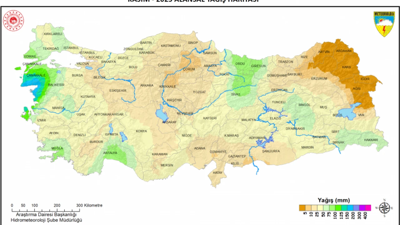 Türkiye genelinde kasım ayında ortalama yağış 33.4 mm olarak ölçülürken, bu değer uzun yıllar ortalamasının %43, geçen yılın ise %39 altında kaldı.