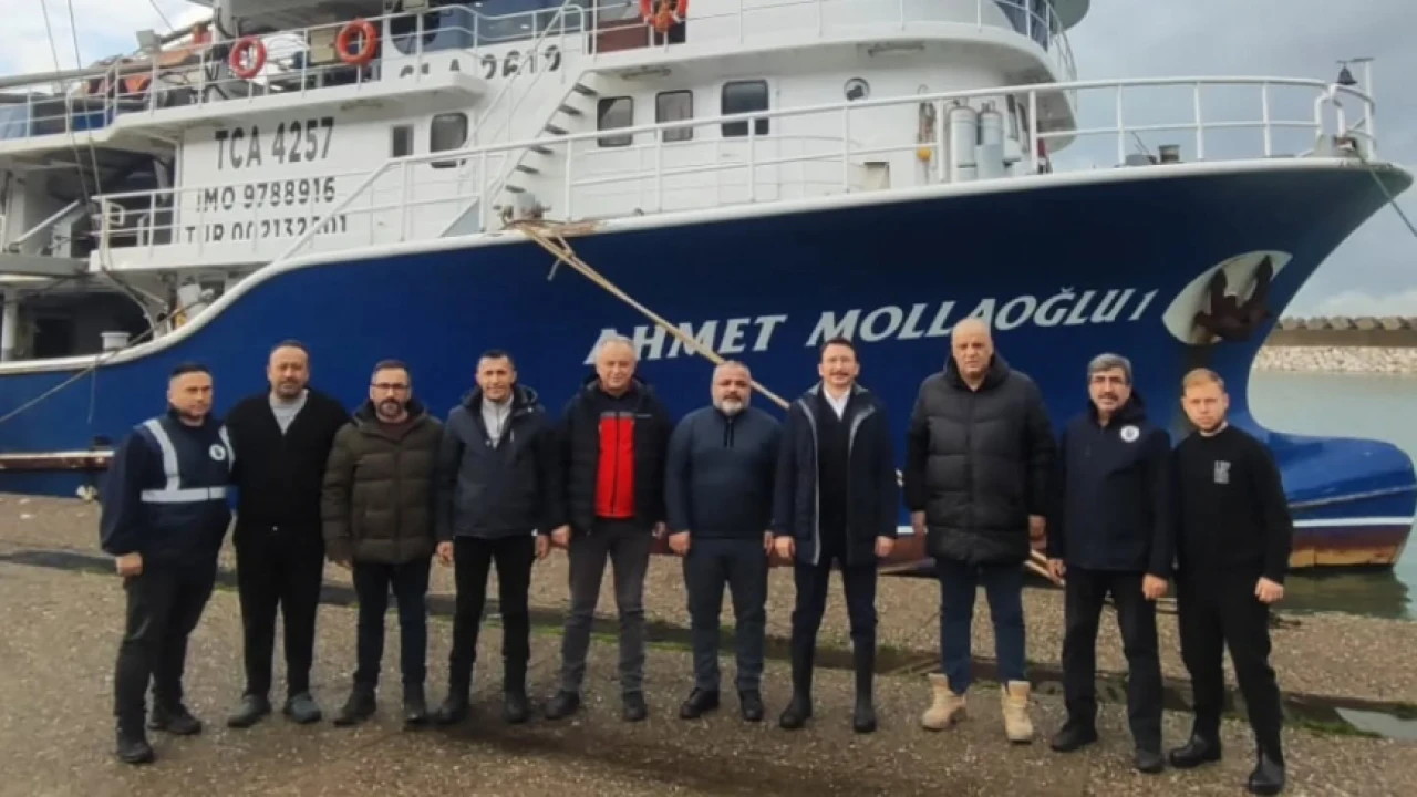 Amasra Kaymakamı Muhammed Çetin, Tarlaağzı Limanı'nda bulunan 47 metre uzunluğundaki 'Ahmet Mollaoğlu' isimli balıkçı gemisini ziyaret etti.