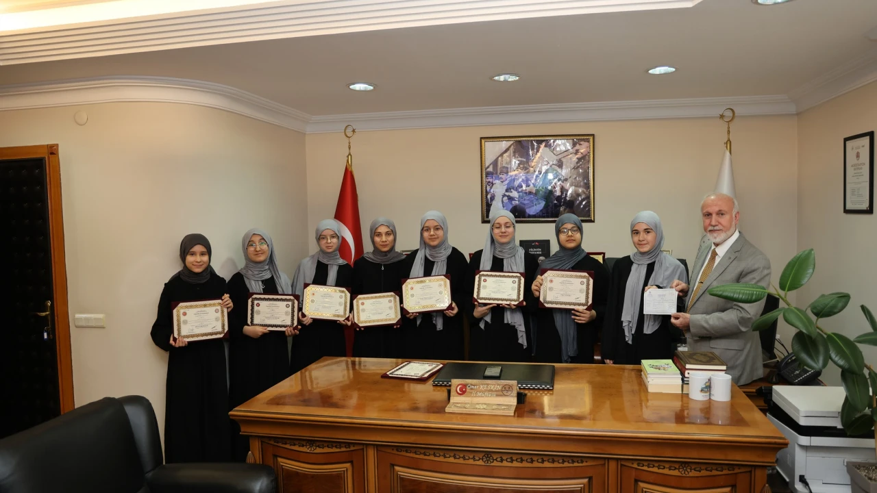 İl Müftüsü Ömer Keskin, hafızlık öğrencilerini ve kurs yöneticisi Gülsüm Yıldız’ı duyarlılıkları ve örnek davranışları dolayısıyla tebrik ederek teşekkür etti.
