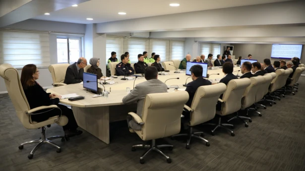 İl Afet ve Acil Durum Müdürü Fatih Tecer’in sunumuyla başlayan toplantıda, kış mevsimi boyunca meydana gelebilecek şiddetli yağış, fırtına, yoğun kar yağışı ve don gibi meteorolojik olaylara karşı alınacak önlemler değerlendirildi. Genel hayatı etkileyebilecek risklerin azaltılması, can ve mal kayıplarının önlenmesi, müdahale çalışmalarının etkin yürütülmesi ve trafik güvenliğinin sağlanması için kurumlar arasında koordinasyonun önemine dikkat çekildi.