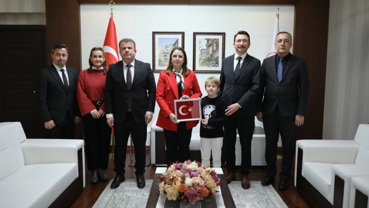 Bartın Valisi Dr. Nurtaç Arslan, geçtiğimiz günlerde babasıyla birlikte gittiği bir markette Türk bayrağına gösterdiği içten saygı ile büyük takdir toplayan 3. sınıf öğrencisi Alper Günenç'i makamında kabul etti.