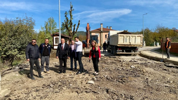 Belediye Başkanı Uzun, meclis üyeleri Mehmet Gültekin, Metin Saraç ve Zekiye Sarıoğlu ile Fen İşleri Müdürü Abdülkadir Oğuz eşliğinde Zübeyde Hanım Caddesi’nde yürütülen cadde çalışmalarını yerinde inceledi.