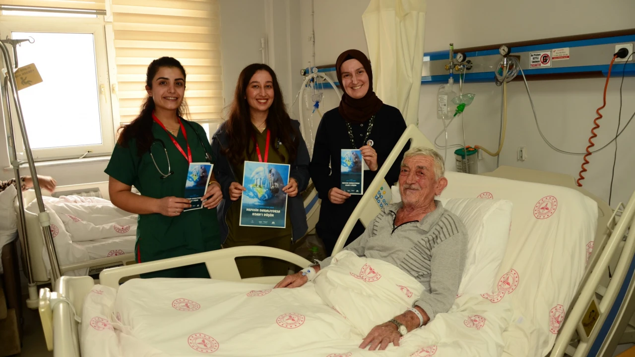 Etkinlik kapsamında Göğüs Hastalıkları Polikliniği’nde muayene için bekleyen hastalar, uzman hekimler tarafından bilgilendirilerek destekleyici materyallerle bilgilendirildi. Ayrıca serviste yatan hastalar da ziyaret edilerek hastalığın önemi, erken tanının rolü, tedavi süreçleri ve yaşam kalitesini artırmaya yönelik öneriler paylaşıldı.