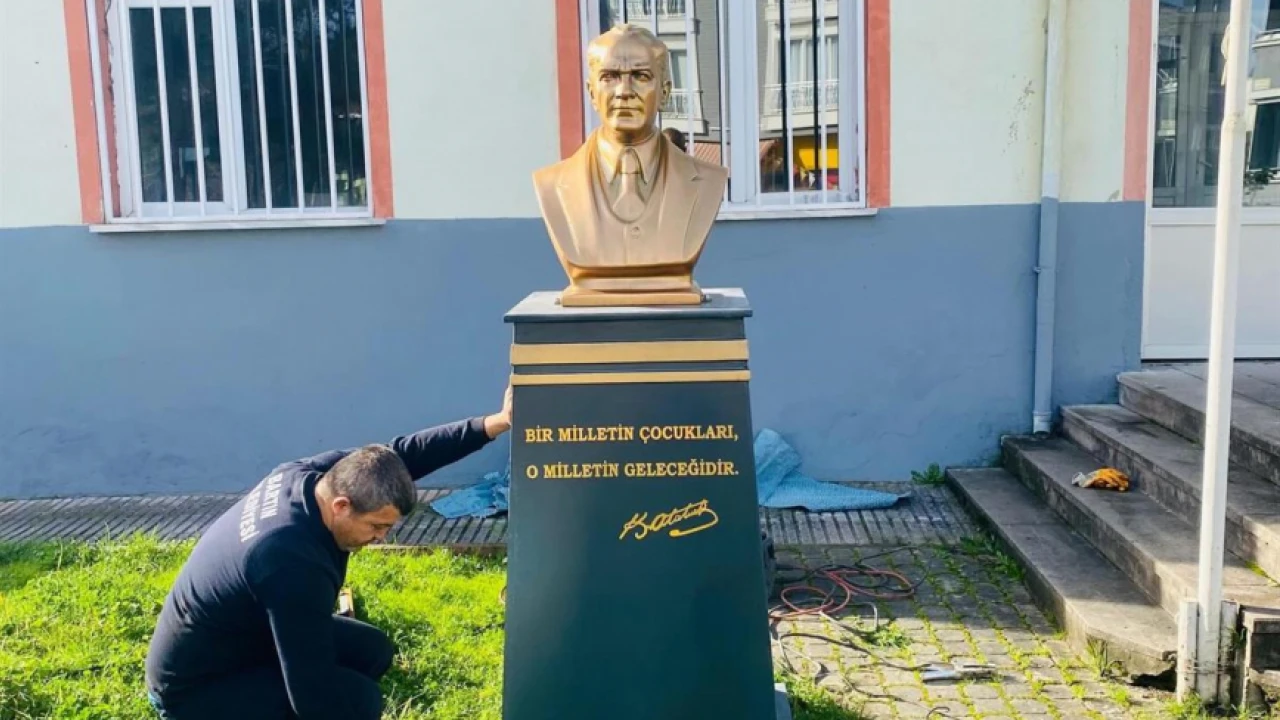 Bartın Belediyesi, kent genelindeki eğitim kurumlarına yönelik destek çalışmalarını sürdürüyor. Bu kapsamda Bartın Şehit Ahmet Seçen Rehberlik ve Araştırma Merkezi önünde bulunan Atatürk Büstü, belediye ekipleri tarafından yenilenerek montaj çalışmaları tamamlandı.