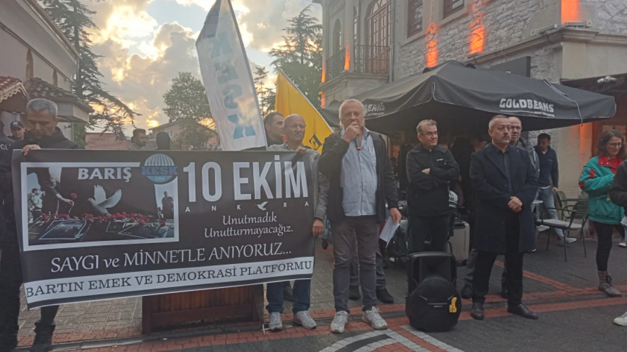 Eğitim Sen Bartın Şube Başkanı İsmet İpçi’nin okuduğu açıklamada, 10 Ekim 2015 sabahı yaşanan saldırının Türkiye’nin yakın tarihindeki birçok kara olayla bağlam içinde değerlendirilmesi gerektiği vurgulandı. İpçi açıklamasında, katliamın hemen ardından siyasi atmosferde oluşan kutuplaştırma ve baskı politikalarının, adalet arayışını etkilediğini; davaların ve soruşturma süreçlerinin eksik ve yavaş yürütülmesinin mağdur aileler ve toplum vicdanında yaralar açtığını belirtti.