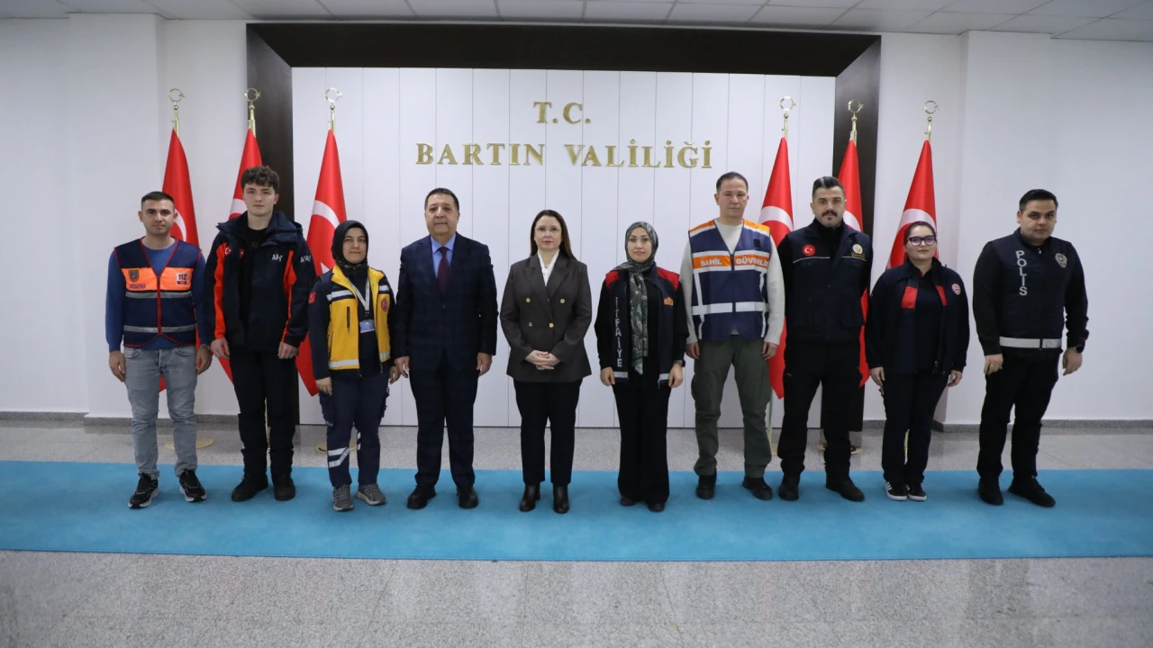Bartın Valisi Dr. Nurtaç Arslan, 112 Acil Çağrı numarasının toplumdaki farkındalığını artırmak amacıyla her yıl 11 Şubat'ta kutlanan '112 Günü' dolayısıyla 112 Acil Çağrı Merkezi Müdürü Enver Çayır ve beraberindeki personeli makamında kabul etti.