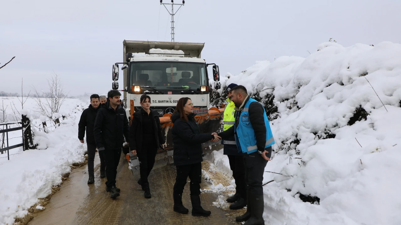 Bartın Valisi Dr. Nurtaç Arslan, il genelinde etkisini sürdüren kar yağışı nedeniyle yürütülen çalışmaların son durumunu sahada inceleyerek, Vali Yardımcısı ve İl Özel İdaresi Genel Sekreter Vekili Uğur Karakaya'dan bilgi aldı.